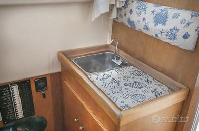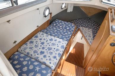 Imbarcazione Sciallino 23 in ottimo stato: • Gozzo cabinato - 23 piedi (8 metri) – anno 2000 (dal 2002 in navigazione in acqua dolce sul Lago Maggiore - Porto Labieno) • Scafo in vetroresina pesante con boiserie in teck • Omoloata per 6 persone • Motore VM 140HP con doppia batteria + predisposizione motore ausiliare fuoribordo • 1600 ore motore (revisione completa a 1500ore) - Eventuale posto barca