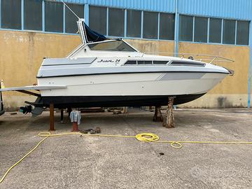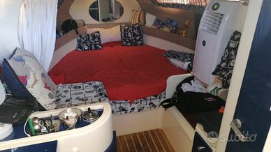 Scafo con una formidabile tenuta di mare, motore volvo penta diesel 200cv, portato a 0 ore nel 2021 attualmente 300 ore sostituzione corno di scarico, raiser e trim. Consumi irrisori (28 lt/h) trasmissione piede volvo penta 290 duo prop, velocità di crociera 20 nodi e massima 27! acqua 200 lt, gasolio 230 lt, wc nautico elettrico, VHF, salpa ancora elettrico (con doppi comandi a prua), boiler nautico, doccetta esterna ed interna con pozzetto acque grigie, cucina con 2 fuochi, frigo, caricabatterie quick sbc 250, luci subacquee e pozzetto, spiaggetta di poppa maggiorata con ingresso comodo. 3 posti letto in cabina. Tappezzeria e lavori di estetica e tendalino da rifare. Attualmente rimessata in cantiere da 2 anni. Solo motore e piede valore 12500 E. Formula vista e piaciuta, si valutano PERMUTE con auto.