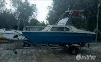 barca semicabinata metri 5 con delfiniera metri 5,50 completa di vari accessori prezzo euro 3,500 vendo anche separatamente solo barca o solo motore, disponibile carrello omologato solo se viene acquistata la barca, Tel. 3283293282