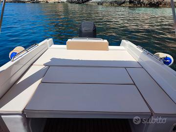 Vendo barca Glastron semicabinata da 7.5m con motore Mercury Verado 300cv (anno giugno/2016). La barca è stata tutta ristrutturata e modificata nel 2023 (allargata leggermente cabina, per avere letto matrimoniale con wc laterale), tappezzeria tutta nuova sia interna che esterna, aggiunti gavoni laterali e posteriori, installati sedili nuovi "tipo poggia reni" con piano cottura e lavandino, aggiunta pedana/giardinetto posteriore con scaletta a scomparsa, luci notturne passo uomo sia interna che esterna barca, tendalino con chiusura completa a 360° per poter dormire tranquillamente in barca, tavolino, inverter per poter utilizzare macchina del caffè/fono da 220v, tre batterie da 100ah con caricabatteria Victron da 30a x 3, navigatore GPS/Eco Lowrance, impianto radio con casse sony marine, verricello elettrico con comandi sia alla plancia che direttamente alla prua, 80 metri di catena, due serbatoi di acqua rispettivamente da 80 litri e 120 lt. Fuoribordo Mercury Verado 300cv con manetta elettronica e Sterzo elettroidraulico integrato, sempre tagliandato officine autorizzate mercury. Caratteristiche motore: Architettura motore: V8 4.6L aspirato naturalmente. Peso: circa 272 kg. Tecnologia: progettato come motore premium per imbarcazioni di fascia alta e con richieste di comfort elevate. Caratteristiche distintive: Sistema Advanced MidSection (AMS): riduce vibrazioni e rumori, con supporti antivibranti avanzati. Sterzo elettroidraulico integrato: elimina la necessità di un sistema idraulico esterno. Per qualsiasi info e/o foto potete contattarmi.