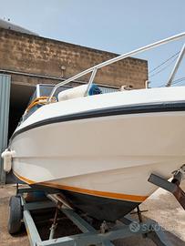 Bellissima rio cabin 6 MT ft completa di tutti i confort cabina con 2 posti letto con bagno con wc elettrico e cucinino con un fornello, barca auto svuotate con un prendisole posteriore larghissimo,monta un motore benzina e un piede volvo penta tutta originale, ha solo bisogno di un rimessaggio stagionale e tutta funzionate..