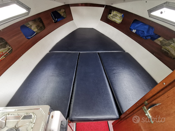 Vendo semicabinato lunghezza M 6,4 motore Mercruiser 260 v8 revisionato e tagliandato, con scambiatori e raiser nuovi, piede Volvo Penta 270. Barca con wc separato e vari accessori : tendalino inox tre archi, completo di cappottina con chiusura totale per campeggio nautico,telo per copertura invernale nuovo, flaps, frigo, doccetta, lavandino in cabina, serbatoio acqua 60 litri, serbatoio benzina inox , due fuochi, verricello elettico con musone basculante e interuttori anche a prua , plancetta di poppa con scaletta, tavolino per pranzare in pozzetto, prendisole a poppa e prua, ecoscandaglio, gps, radio con due casse, prese 12V e USB, impianto elettrico separato con due batterie con separatore di carica e parallelo , pompa sentina con galleggiante automatico, ampio passaggio verso prua da ambo i lati.Barca in vetro resina molto robusta fatta dai cantieri veneziani.Possibilita di trasporto. Prezzo poco trattabile.