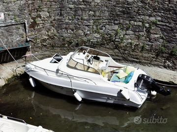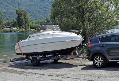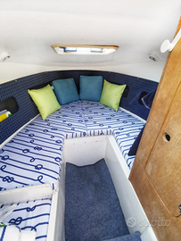 Vendo per passaggio a categoria superiore, eccellente cabinato di m. 5.80. Anno di fabbricazione 2006, scafo in vetroresina, 3 posti letto e ampi spazi sotto ai paglioli del pozzetto, wc elettrico 2021, cuscineria completamente rifatta, tavolo, ampio prendisole sia a poppa che a prua, pompa d'acqua e doccetta, lavello, tendalino e telo copri barca e motore, pompa di sentina elettrica, MOTORE MERCURY F 40 guidabile senza patente. Completo di carrello. Possibilità di affittare posto barca in darsena privata in località Oliveto Lario (Lago di Como).