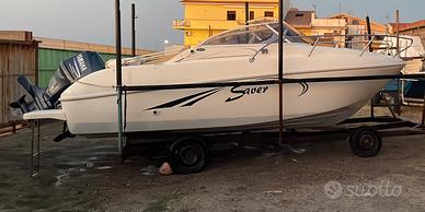 Vendo Saver 590 cabin. Acquistata nuova nel 2010 dal precedente proprietario (tenuta in maniera maniacale) ed acquistata da me nel luglio 2025. Monta un affidabilissimo fuoribordo Yamaha 115 CV 4 tempi iniezione, manutenzionato sempre scrupolosamente. La barca è pronta per qualsiasi prova con il vostro meccanico di fiducia.E’ stata acquistata da me con motore manutenzionato in quanto erano stati eseguiti i seguenti lavori: • Sostituzione della girante con relative guarnizioni. • Sostituzione zinchi motore e trim. • Cambio olio piede e olio motore. • Sostituzione filtri olio e benzina (monta due filtri decantatori). Dotata di molti optional che la rendono molto confortevole: • Frigo con mini freezer (funziona sia a 220 V che a 12 V). • Inverter e caricabatterie Quick SBC 250 (carica 25 Ampere l'ora, fino a tre batterie). • Due batterie Varta da 100 A. • Serbatoio acqua maggiorato da 90 litri. • WC chimico, doccia e lavandino con pompa automatica. • Stereo ( nuovo montato da me ad agosto 2025) e TV. • In cabina si dorme comodamente (il prendisole di poppa può essere utilizzato come letto). ACCESSORI Telo su misura per rimessaggio invernale acquistato ottobre 2025 • Ecoscandaglio Lowrance HDS 5 con trasduttore sia esterno che interno. • Spiaggette con scaletta a scomparsa. • Supporto motore ausiliario a scomparsa. • Estrattore gas e due pompe di sentina. • Prendisole sia a prua che a poppa e tavolo. • Due tipi di chiusure totali: una con cristal trasparente e l'altra per la notte o per creare ombra. Vendo per cambio tipologia di imbarcazione se interessati e/o per ulteriori foto e video scrivere al 3473982881 watsapp