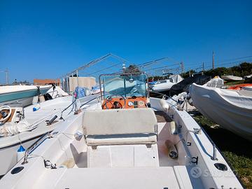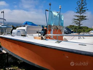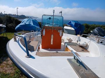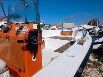 completa di consolle centrale dotata di tientibene in acciaio inox, ruota timone in acciaio inox completa di timoneria per motore 40 hp installata l'anno scorso, serbatoio in pvc 24 lt impianto carburante con filtro racor, impianto elettrico, stacca batteria tromba e luci funzionanti, 3 gavoni centrali e 2 laterali, 6 portacanne, porta motore di scorta, bottazzo nuovo, necessita solo di installazione motore e batteria. Visibile da Nautica Fioro', lago di Vico.