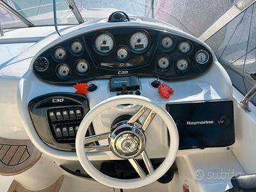 GLI strumenti di navigazione comprendono GPS Raymarine, VHF, bussola, ecoscandaglio e speedometro.stereo con comandi plancetta di guida