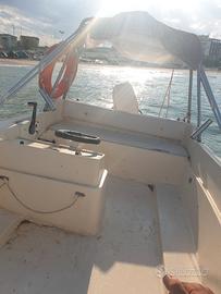 La barca è dotata di tutte le dotazioni per le 6 miglia, 2 poggia canna, tendalino quasi nuovo, motore johnson 25 CV 2 tempi che ne sviluppa di più. Ovviamente ha l'età ma è una bomba e in più do un altro motore uguale funzionante per pezzi di ricambio compreso ovviamente di libretto. Non so se mi sono scordato qualcosa poi se vuoi altre foto dimmelo e te le mando.