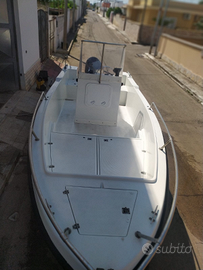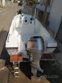 Barca in ottime condizioni 6,20m x 2m, motore Honda 4 tempi a benzina 75/90, inclusa di carrello non omologato artigianale in ottime condizioni basculante, e con tutta l'attrezatura di bordo.