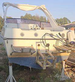 Vendo bellissimo semicabinato del prestigioso cantiere pavese SIDRA modello Futura 21 piedi, completamente refittata di carene e murate e quadro strumenti/consolle rimesso a nuovo nell'anno 2025. Scafo estremamente leggero (640kg a secco) ma allo stesso tempo robusto e con una carena a V pronunciata, stabile e sicura anche con mare mosso. Lunghezza fuori tutto 7,20 metri, motorizzazione fuoribordo mancante ma predisposta con tutto il necessario (era in acqua fino a 10 giorni fa), batterie nuove 2025 2x100 Ah, serbatoio in acciaio inox 160lt montato sotto il paiolo centrale (in modo da abbassare le masse e il baricentro) con impianto a norma, serbatoio acqua con autoclave, cartografo e scandaglio LOWRANCE con visione 3d, salpa ancora elettrico con 50 metri di catena azionabile sia dalla consolle che dalla prua, lavandino esterno con rubinetto, vhf cobra marine portatile ricaricabile, parabrezza in policarbonato sost. nel 2023, cuscineria interna ed esterna ,spiaggette comode ed ampie con scaletta in inox. Barca comodissima con un abitabilità di barche ben più grandi con cabina 2 posti letto + bagno separato con porta, wc bagno manuale (in modo da non avere mai guasti poco piacevoli) con doccetta, sportelli, gavoni e tavolo che si abbassa per formare prendisole in multistrato marino, 2 porta canna ad incasso, braket con tubolari in inox, luci di via nuove a led sotto roll bar, cerniere ,chiusure tutto in inox. comprese dotazioni di bordo basilari previste. La barca è molto apprezzata e conosciuta dai puristi diportisti per le sue molteplici qualità. Prezzo vista e piaciuta 6500 euro. Valuto permuta anche con orologi. Astenersi perditempo grazie.