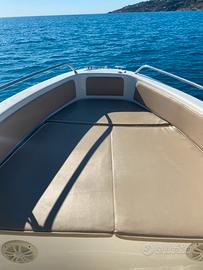La barca si presenta abbastanza spaziosa in quanto è dotata di doppio prendisole, sia a prua che a poppa;
