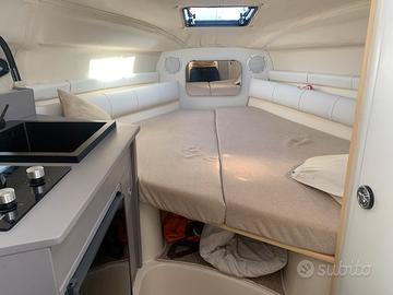Vendo Stingray 729 ZP carrellabile (7,30x2,50m) attualmente rimessata presso Porto Albarella (RO) con disponibilità a cedere anche posto barca. Salvo diversi accordi la barca viene ceduta con tagliando stagionale e antivegetativa fatti (a partire dal 9 aprile 2026), dotazioni di sicurezza entro 12 miglia per 7 persone ed eventualmente già messa in acqua (a partire dal 1 maggio). La barca ha 4 posti letto (2 in dinette di prua, 2 in cuccetta di poppa e posto aggiuntivo nel pozzetto dotato di luci led e tendalino camper), tavolo da pranzo interno ed esterno, altezza interna zona wc e cucina 1,85m, caricabatterie e pompa sentina nuovi, ampia plancetta di poppa in legno con doccetta, cuscineria interna ed esterna completa, omologata per 10 persone, interni refittati 2025, ecoscandaglio Garmin, VHF fisso, impianto stereo, frigorifero, salpa ancora elettrico con 50m catena, bagno, fornello 2 fuochi gas e lavabo nuovi, motore Mercruiser 5.7, V8, 270 CV, benzina, con riser e collettori scarico ok, piede revisionato 2025. Utilizzata regolarmente e senza problemi tutta l’estate 2025 e pronta per qualsiasi prova con tecnico di fiducia.