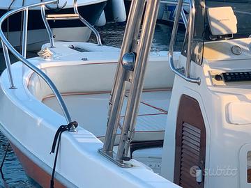 Terminal boat 24 8 metri con motore Evinrude 250 2 tempi ore moto circa 500 con volano nuovo cambiato l'anno scorso. metri 50 di catene con prendisole a prua e a poppa