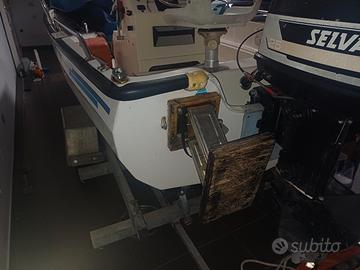 vendo barca tipo conero Mt.480 circa con motore selva cv.25 con girante nuova cambio olio al piede con cuscineria completa Salpareti e salpa ancora eletrico telo copertura totale batterie Scaletta di risalita in acciaio inox Luci di via usata solo al lago Barca adatta per pesca o per uscite in compagnia con consumi inrisori LA BARCA NON HA CARRELLO