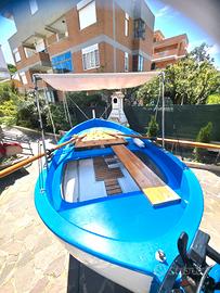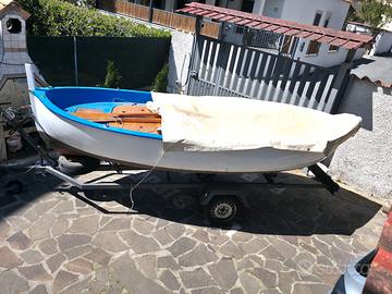 Vendesi barca tipo gozzo mt5 circa,in ottimo stato nessun lavoro da eseguire, no osmosi, predisposta per motore EB, completa di ampio tendalino, remi, scalmi,paiolato in compensato marino 10 mm, motore FB tipo Mercury 4 CV 4 T pari al nuovo. Dal 1 luglio in acqua qualsiasi prova.Ottima per la pesca e da diporto per famiglia. Barca 1300,00 euro motore 1300,00 euro ( non si vendono separati). Non trattabili.