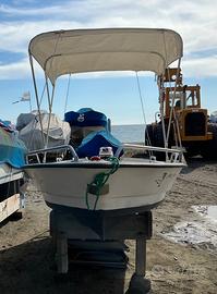 Barca tipo LANCIA di 4 mt MOLTO CARINA con tendalino e ganci ( non corde ) per sollevamento con motore YAMAHA 8 cv 2 Tempi con libretto originale PERFETTO con tagliando appena fatto. Vendo anche separatamente a 500 euro