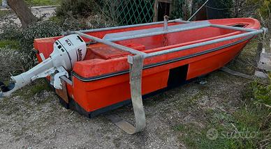 completa di motore johnson 8cv 2t con 100h totali di navigazione, appena tagliandato e girante nuova.