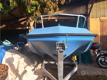 Vendo trimarano in vetroresina, marca sessa, tipo boston whaler, messo molto bene, doppio guscio in vetroresina, antivegetativa fatta nuova quest'anno, paiolato in legno e 2 panche, tientibene in alluminio sui bordi e sulla prua. Completa di remi in alluminio e Tiemo e telo di copertura su misura con archetto. Vano di ispezione doppiofondo e gavone di prua per ancora. . Tag Laguna, Venezia