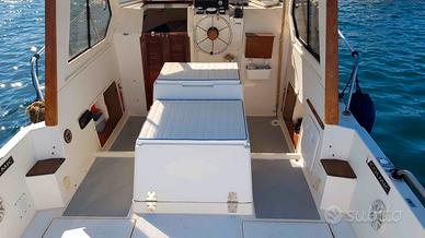 Vegliatura 700 Of.Ma.Re. del 1984 di mt. 7.00 w.a., e larga mt 2,6 - completamente ristrutturata in tutto (impianti elettrici, idraulici, prese di mare, timoneria, e molto altro) motorizzata con EB turbo diesel VM 170 cv con 80 ore di moto completamente messo a nuovo ad Aprile 2017, semicabinata con due posti letto, lavandino e fornello a gas in cabina, stereo cd, doccetta a poppa, pompa acqua di mare x lavaggio barca, WC marino elettrico in cabina separata, serbatoio diesel da 140 lt, 2 serbatoi acqua x un tot. di 70 lt, verricello elettrico con 30mt di catena, cabina esterna con tenda x chiusura invernale, e tendalino x copertura estiva pozzetto, ecoscandaglio+Gps Garmin 721xs chirp con 2 trasduttori passanti (1 da 1Kw 50/200hz + 1 da 600w chirp x pesca costiera e drifting), VHF con regolare licenza, 2 batterie 1 da 180ah x servizi e 1 da 120ah x motore, impianto fotovoltaico per ricarica autonoma delle batterie, ripartitore di carica, nº 3 pompe di sentina di cui una automatica, 7 porta-canne, ottima e spaziosa per la pesca ma anche molto comoda x la famiglia. La barca plana già a 12 nodi, velocità crociera 20 nodi e max 25nodi. Barca x intenditori. La sua particolare ed eccezionale carena non fa spruzzi durante la navigazione, non ha ne beccheggio ne rollio. La barca è perfetta in tutto. Non necessita di nessun intervento. Pronta alla navigazione dai consumi ridotti. vendesi ad € 17.500. No affaristi - No permute - No perditempo Cell.347/634.37.37