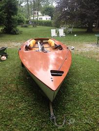 Vendo bellissima barca a vela in legno modello Strale del progettista Ettore Santarelli, 4.90 di lunghezza. Perfetta, 3 rande, 3 fiocchi, 3 spi, carrello alaggio ed eventuale carrello stradale