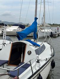 Bellissima barca a vela Dufour 24 perfetta , carrellabile ,,,, vendo senza carrello,,,,io non ho possibilità di trasportare , conosco chi può farlo,,,,ora è in acqua pronta x Navigare ,,,Vegetativa fondo ok ,,, tutte vele ok rolla fiocco,,randa ?ecc , deriva fissa pescaggio 1,20/1,30 , motore 4 tempi appena montato Mancinelli ,6cv , garanzia Mancinelli ,vedi acquisto allegato ,,altezza cabina 1,80 ,,lunghezza 7,30 larga 2,50 ,,,tenuta maniacalmente ,unica nel suo genere,,,visibile lago Trasimeno no perditempo, , posto barca pagato, salvagenti e kit sicurezza nuovo 6 miglia nuovo ,?spinnaker nuovo,