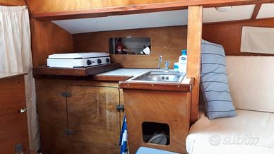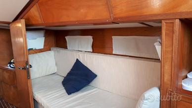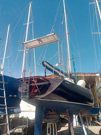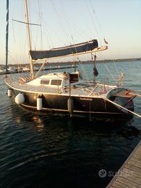 Barca a vela: lunghezza 8,90 , baglio max 3,30 , scafo in alluminio, cantieri navali Grigio, anno 1986. Progettista Scattolin. Timone a barra, 5 posti letto, 1 bagno, motore Yanmar 13,1 kW, vele: randa, Genoa, Gennaker. Allestimento: tender, autopilota raymarine , eco scandaglio Garmin, VHF Cobra marine, pannello FV 200 watt, 2 batterie servizi da 100, salpa ancora, pompa sentina, serbatoio acqua 2x 50 l, caricabatterie, fornello a gas, frigorifero. Manutenzione: antivegetativa, tagliando motore, lavori vari di ripristino con relative fatture. Barca visibile al porto di Crotone