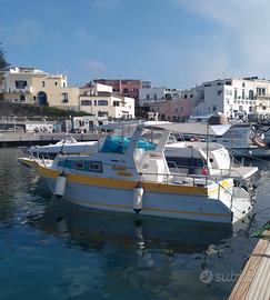 Vendesi Pilotina bimotore Diesel E richiesta Patente Nautica Cabina con 3 posti letto con bagno separato e cucina esterna a gas. 2 motori Vetus P4.25 a ore (0) Linea asse, timoni e eliche nuove Tutte le luci a Led VHF fisso Furuno 2 batterie motore+ 1 servizi Pannello solare 250 watt + regolatore Victron (Totale autogestione energetica, frigo acceso 24/24 h e batterie sempre cariche al top) impianto 220 volt caricabatterie Victron a tre vie Impianto stereo Frigo a compressore 12/220v (55 litri) Ecoscandaglio e gps 3 pompe sentina Doppio serbatoio gasolio+uno acqua dolce in acciaio Portacanne in acciaio Verricello elettrico Doccetta esterna acqua dolce Impianto elettrico aggiornato 2025 Cuscineria estera nuova 2026 La barca misura a libretto 6,80 con costi di ormeggio agevolati, ma la lunghezza reale è di 8 ,55. Portata 8 persone (a libretto) Per ulteriori informazioni sarò lieto di informarvi telefonicamente. La barca è a Forio d'Ischia. P.S. Lavori suggeriti al nuovo Armatore Eventuale aggiunta di una spiaggetta di Poppa Istallazione di Flap a regolazione fissa.