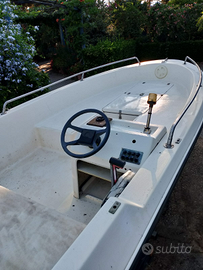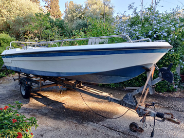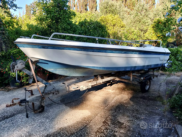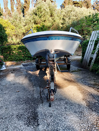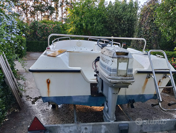 Vendo Barco in vetroresina 5 metri fuori tutto, con motore enverude 25/35 2 tempi, carrello Elle I con documenti marciante, cuscineria nuova sky bianco