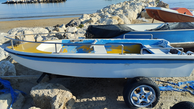 Vendo barchetta lunga 3.3 metri in ottime condizioni pronta per navigare sia a remi che a motore. Scafo planante doppio fondo, gavone molto capiente sulla prua e tientibene in acciaio.