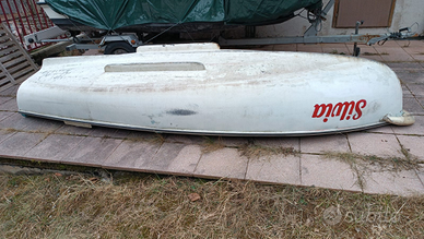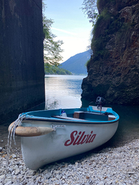 Barca in vetroresina, grattata e riverniciata tutta 2 anni fa, sarebbe da pulire un po'e riverniciare la parte interna di azzurro (colore è compreso con acquisto della barca).