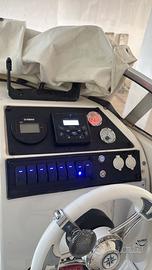 Barca con murata alta roll bar in acciaio ribaltabile tendalino avanti e dietro due batterie doccetta nuova stereo boss marin ecoscandaglio garmin. Motore Yamaha 40/70 con circa 200 ore senza patente anno 2017 serbatoio benzina da 100 L in acciaio Serbatoio acqua per doccia e wc Barca perfetta teak a poppa nuovo sostituto quest anno Pronta per il varo
