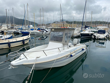 Vendo per passaggio ad altra tipologia Arkos Bimax 630 tenuta perfettamente , motore Honda 90 cv del 2000 revisionato completamente nel 2024, manutenzione ordinaria barca e motore annuale , cuscineria interna ed esterna del 2023 ,copertura hard top e tendalino acciaio nuova , accessoriata con Eco , diverse prese USB, presa banchina , 2 batterie da 100 . Ottima per la pesca con murate alte e tenuta mare perfetta. No perditempo e collezionisti di foto . Prezzo non trattabile .