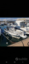 Barca allestita per pesca d'altura, T-Top con 5 portacanne e pannelli solari, 5 portacanne in murata, igloo per il vivo, stereo, VHF, telone di copertura completa su misura, motore Mercury 150 cv, motore ausiliario Mercury 9.9 cv, doppia batteria. Visibile a Riva Di Traiano.