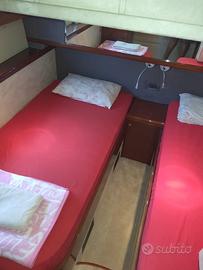 * Cabine: 3 cabine (una master matrimoniale, una doppia con letti singoli) e 2 bagni con WC.