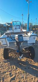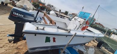 Vendo barca come da foto di 4,65 mt con fuoribordo yamaha 25cv con accensione manuale con guida a barra e al timone. Barca autosvuotante con pompa di sentina. Remi, ancora, ciambella e 3 giubbotti. È stata fatta da pochi gg la girante e olio piede. Prezzo trattabile.