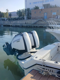 Vendesi per cambio imbarcazione. Come da titolo Zaniboni Bluetime 27 (lunghezza 9,5 metri) colore bianco come da foto del 1995, motorizzata con 2 motori fuoribordo Evinrude 200hp con ancora 2 anni e mezzo di garanzia, doppio lavandino esterno con acqua dolce e salata, due docce esterne con acqua dolce e presa a mare per acqua salata, 2 vasche per vivo, 2 porta canne per murata e specchio di poppa, palo per sci nautico, salpa ancora elettrico, cartografico e eco nuovo Raymarine da 10 pollici con possibilità di trasformarlo in 3D, VHF, doppia batteria, impianto stereo sia a prua che a poppa, tendalino a poppa e a prua tenda ermetica e collaudata sia per acqua che per vento creando due posti letto, grande prendisole a prua,luci di cortesia nello specchio di poppa, tavolo apribile esterno, cucina con due fuochi a gas con lavello, frigorifero, wc elettrico sostituito nel 2021 e lavandino, due posti letto e cuscinerie sia a poppa che prua comprese.