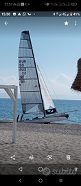 catamarano f18 Hi- tech. albero timoni e traverse in carbonio,derive da 20 cm, bompresso e boma in avional.attrezzatura harken. doppio armo : cat (randa e Spy) e sloop ( randa fiocco spy)