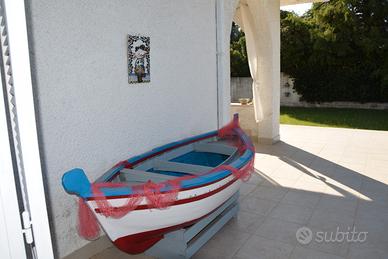 Barchetta in legno realizzata da un maestro d'ascia siciliano di Licata. Bellissima da esporre in una villa, in un ristorante o in un lido balneare e da utilizzare come buffet posizionando al di sopra una lastra di plexiglas. Pedana d'appoggio perfettamente stabile.