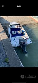 Vendo hellas 4.50m completo di tutto Luci di via Luci interne Impianto stereo Serbatoio Tiemo Strumento gps Batteria Monocavo Vendo solo barca a 1900 poco trattabili dopo visione.
