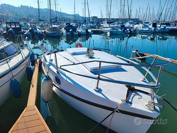 Presso la Nautycaravan di Binasco vediamo come da foto Barca a Vela con Albero da 7,30 Mt e motore Piviere 614 in VETRORESINA!! con motore entrobordo Nanni Diesel bicilindrico un MULO da 2.60 HP da 11 Cv 570cc barca completatamente restaurata a nuovo TUTTO DOCUMENTABILE TRAMITE FOTO motore sempre manutentato parte al PRIMO COLPO!! rimessata al coperto viene messa in mare una volta all'anno SPETTACOLO!! CON POCHI SOLDI potrete visitare tutte le calette più famose.. nessun lavoro da fare vela perfetta 3 posti letto con bagno e angolo cucina completa di CUSCINERIA bianca in pelle prendi sole. PRONTA AD ESSERE APPOGGIATA IN MARE!! CARRELLABILE!!