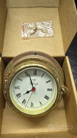 Barometro + orologio da parte per interno barca vintage in stile nautico completo di viti da fissaggio in ottone.