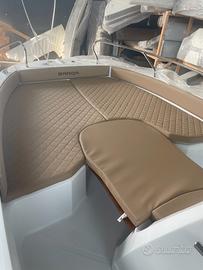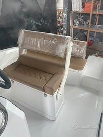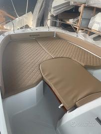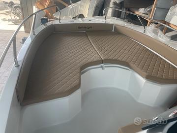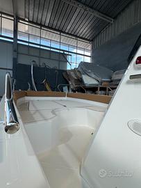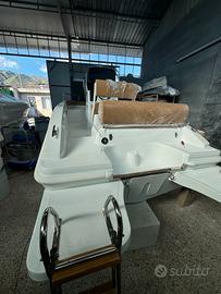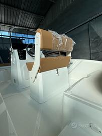 Barca molto spaziosa per la sua categoria, lunga 6.30 mt. con spiaggette di poppa integrate, prua ampia e squadrata, prendisole e seduta fronte consolle di guida, tasche laterali e già impianto elettrico oltre a luci, sentina, presa accendino, scaletta bagno e Tendalino parasole