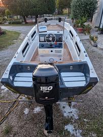 Vendo barca open baruffaldi 600, modello da pesca (pochissimi esemplari) con sponde più alte. La barca è sempre stata tenuta molto bene, visibile e disponibile per qualsiasi prova. Di seguito un elenco degli interventi effettuati: Verniciatura completa esterni, teak sintetico, rifacimento specchio di poppa rinforzato per motore piede XL, impianto elettrico completo, illuminazione interna completa, pozzetto, perimetrale e nei gavoni, pompa sentina, serbatoio acqua dolce 60 litri, serbatoio benzina 120lt, portacanne, tendalino a 4 pali, copri console in tessuto sunbrella, impianto stereo completo, bitte a scomparsa centrali, cruscotto in carbonio, radio bossmarine bluetooth, timoneria idraulica nuova 300cv 2024, motore optimax 150cv in perfetto stato manutentivo. Cuscineria completa, sistema di aggancio per prendisole allungabile, tendalino completo che copre tutta la barca. Carena portata a 0 nel 2024 con trattamento anti osmosi. Si vende per passaggio ad imbarcazione 8 metri. No perditempo, affaristi, sognatori. Disponibile per info e foto