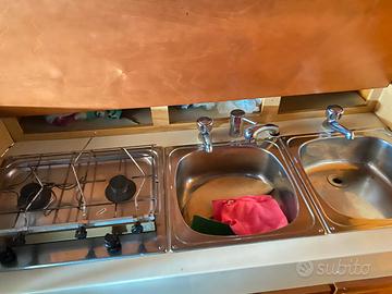 Doppio lavandino cucina, cucina e anche esterna,2frigo,mobile cucina con cassetti ed anta,bagno ampio con wc elettrico e mobile bagno capiente,tanti gavoni,salpa ancora elettrico,tender di 2m e 3 batterie da 180 nuove.