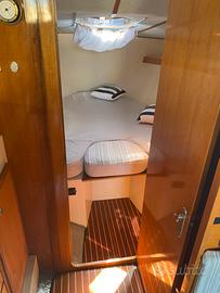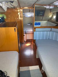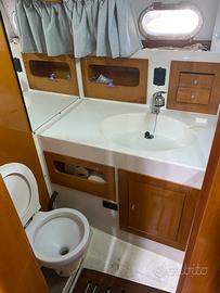 Molto luminosa grazie a quattro oblò per lato molto ampi più passauomo in cabina di prua e due oblò a soffitto parzialmente apribili in dinette,grande abitabilità alta più di 1.85MT all'interno anche nel bagno,larga 3.15 MT lunga 8,20 da documenti più ampia plancetta di poppa con comoda scaletta per risalire dall'acqua.