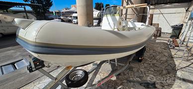 gommone in condizioni eccellenti pari al nuovo tubolari appena rifatti, vetroresina perfetta, impianto elettrico nuovo, completo di rollbar in vtr abbattibile, doccetta, luci di navigazione, luvi sommerse di poppa, vhf, dotazioni di sicurezza, pedane di poppa maggiorate, sclatetta. motore yamaha 40/60 4 tempi completamente revisionato e tagliandato. battello praticamente pari al nuovo mai andato in acqua dopo l'esecuzione dei lavori di refit.