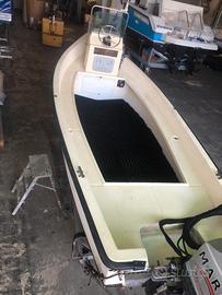 Per inutilizzo vendo Batana in vtr lunga 4,95 tipo Conero con postazione di guida a prua per ottimizzare lo spazio interno. Doppia batteria, luci di via, di fonda, tromba e pompa di sentina automatica. Fondo di calpestio in gomma spessa. Motore Mariner Magnum3 25/50 CV con timoneria idraulica. Con questo motore necessita la patente nautica. Si valuta eventualmente vendita separata di motore e barca, da concordare.