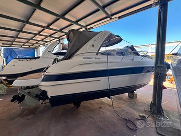 Bavaria 27 sport motori 4.3 Gxi in condizioni impeccabili . Molto ben accessoriato con elica di prua, tendalini completi nuovi , teli copri barca nuovi , impianto stereo con amplificatori, luci a led , webasto , piano cottura nuovo , frigoriferi nuovi . Plancetta maggiorata con teak ( nuovo ) Tantissimi altri lavori eseguiti, elenco completo su richiesta. Vedi four Winns Cranchi sessa