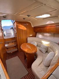 Presenta diversi optional come : manette elettroniche; chartplotter raymarine axiom +; elica di prua, divano interno in vera pelle; cuscineria esterna, di prua e sedile di guida 2024 con ricami logo; copertura invernale; tendalino e copri vetro ombreggiante appena fatti 2025; ombreggiante di poppa, oblò con tendine annesse ; pavimentazione esterna in vero teak, salpa ancora elettrico; passerella e molto altro..