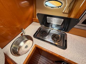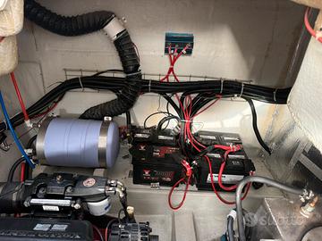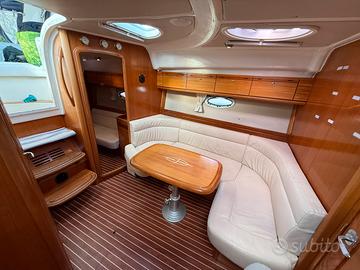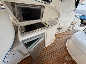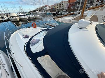 Elica di prua, Plancetta maggiorata in teak, Carica batterie, Boiler, Cavo banchina, Aria condizionata, Impianto audio esterno e interno, Mobile Grill esterno con lavandino e frigo, tendalini completi estivi e invernali, più copertura totale pozzetto, GPS e trasduttore Raymarine nuovi. Bagno con doccia e Wc elettrico