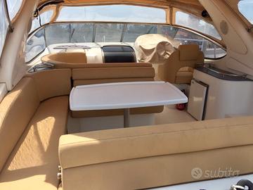 Splendida imbarcazione in condizioni da vetrina, sempre rimessata al coperto durante l'inverno, full optional, motorizzata 2 x Volvopenta 340cv, bassi consumi e bassa rumorosità. Studiata nel minimo dettaglio per chi in barca vuole vivere serenamente e comodamente. Gli spazi esterni ariosi e confortevoli invitano a vivere il mare: la plancetta di poppa ampissima, lo spazioso pozzetto arredato con divani comodi e pratici, l'accesso a prua agevole, il prendisole di prua ampio. Spazi sottocoperta progettati per garantire un elevato e costante il livello di benessere: un comodo letto matrimoniale a prua, la dinette attrezzata con tavolo che abbassandosi permette di ricavare altri 2 posti letto, ed un ampia stanza con 2° letto matrimoniale; il bagno completo di ogni comfort.